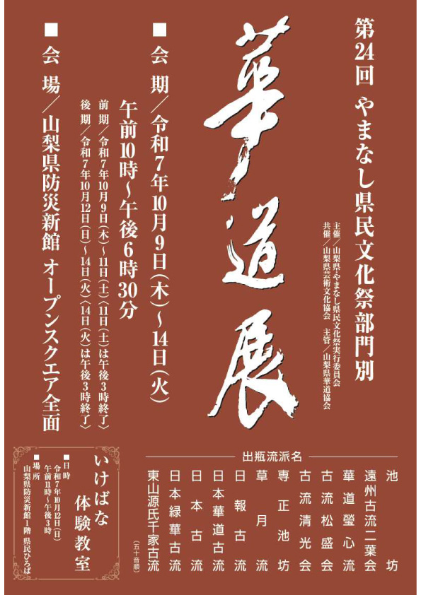 ・「華道展」 令和7年10月9日(木)~10月14日(火)10:00~18:00