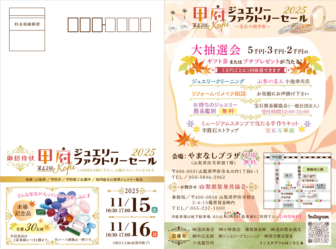 山梨県装身具協会事務局 TEL:055-237-1000 (甲府市相生2-4-15)