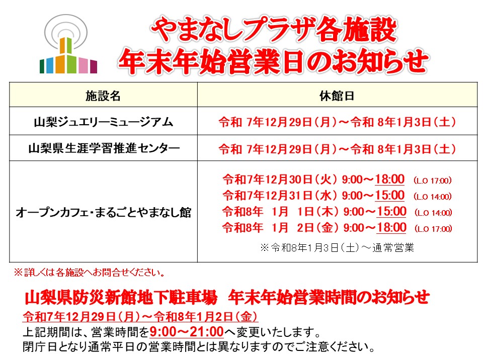 令和7年12月29日(月)~令和8年1月2日(金)